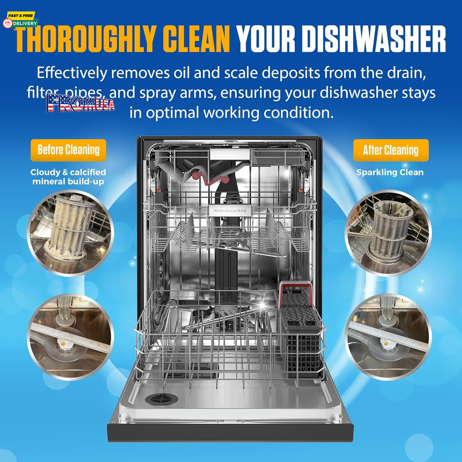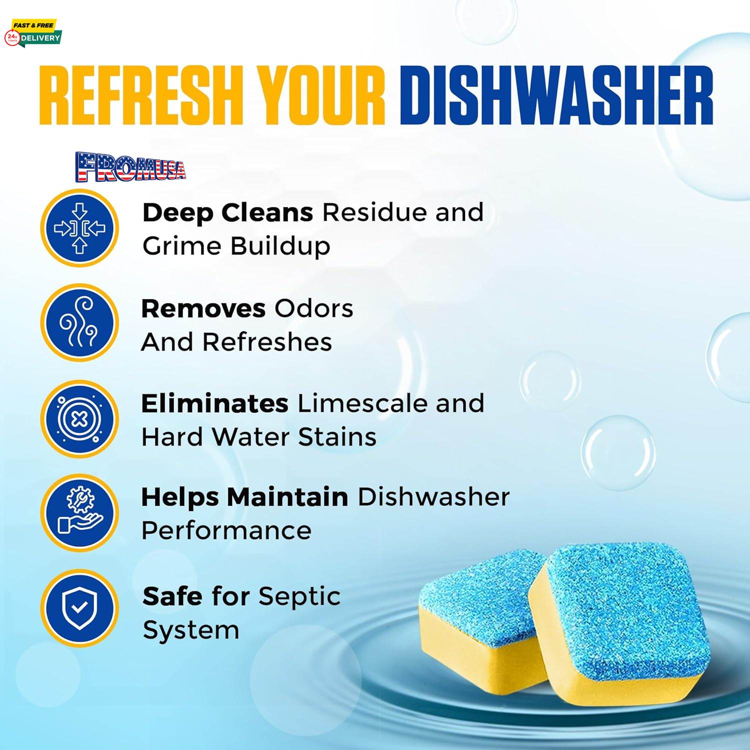 Menu Other Items Feedbacks About Us Contact Us Add To Favorites Dishwasher Cleaner Tablets - 24 Tablets (1-Year Supply) Lemon-Scented, Heavy Duty Cleaning Descaler Pods for Dish Washer, Deep Cleans & Maintains Your Dishwashing Machine for Optimal Performance 12-Month Supply for Continuous Cleaning: Get a full year of heavy-duty cleaning with 24 powerful tablets, perfect for keeping your dishwasher running smoothly month after month. Lemon Fresh Scent: Experience a burst of freshness with every cycle! Bastion Dishwasher Cleaner Tablets are infused with a delightful lemon scent, leaving your dishwasher smelling clean and fresh. Deep Cleaning Action for a Spotless Dishwasher: Effectively removes grease, grime, limescale, and buildup, ensuring your dishwasher operates at peak performance and stays sparkling clean. Easy to use: Just place one tablet in the dishwasher's detergent compartment and run a normal wash cycle. No mess, no hassle – just an incredibly clean dishwasher ready for your next load. Protects and Extends Dishwasher Lifespan: Regular use helps prevent clogs, buildup, and unpleasant odors, extending the lifespan of your dishwasher and ensuring it continues to function optimally. Ideal for all major dishwasher brands. Product description Discover More From Bastion Add to Cart Add to Cart Add to Cart Add to Cart Add to Cart Add to Cart Customer Reviews 4.5 out of 5 stars 1,625 4.0 out of 5 stars 109 4.5 out of 5 stars 205 4.5 out of 5 stars 3,850 — 4.3 out of 5 stars 612 4.4 out of 5 stars 1,500 Price $9.99 $ 9 . 99 $16.95 $ 16 . 95 $17.95 $ 17 . 95 $9.99 $ 9 . 99 — $19.95 $ 19 . 95 $23.95 $ 23 . 95 Intended Use: Dishwasher Garbage Disposal Coffee Machine Washing Machine Multi-Use Toilet Tank Garbage Disposal Contents: 24 Tablets 24 Tablets 24 Tablets 24 Tablets 7 oz of Power Gel 6 Packets 24 Packets Form: Tablet Tablet Tablet Tablet Gel Powder Packet Scent: Lemon Citrus Unscented Unscented Unscented Unscented Citrus Cleans: ✔ ✔ ✔ ✔ ✔ ✔ ✔ Descales: ✔ ✘ ✔ ✔ ✘ ✔ ✘ Maintains: ✔ ✔ ✔ ✔ ✔ ✔ ✔ Item Specification Item model number RBDWC24 Item Form Tablet Brand Bastion Package Dimensions 7.17 x 6.57 x 0.67 inches; 3.53 ounces Material Feature Biodegradable, Cruelty Free, Vegan Scent Citrus, Lemon Specific Uses For Product Dishwasher Manufacturer Rutledge Brands Dimensions Shipping Returns Additional Info Product Dimensions: 6.57 inches x 7.17 inches x 0.67 inches. Weight: 3.53 oz Fast shipping is very important for us. Our standard shipping service is FREE. Your order will be shipped within 1-3 business days upon full payment received. Most items are delivered within 3-5 business days, however, please allow 3-10 business days. We are shipping only to USA. We only ship to the confirmed Paypal address. We reserve the right to cancel any order for any reason at any time. We are not responsible for undeliverable addresses. We offer a 30 day return policy from checkout winning date. Your satisfaction is guaranteed! If for any reason you are unhappy with your item, just return it within 30 days for a full refund, minus shipping cost. Please contact us prior to initiating a return so that we can issue you a refund authorization. Items defective upon receipt must be packaged in their retail packaging as if new and returned with a detailed description of the problem. Return shipping fees are not refundable. We reserve the right to decline any returns if the above guidelines are not followed. All of our items, unless otherwise stated, will only run on 120 volts. Please check to make sure your country complies with these specifications. If you have a problem or question regarding your transaction please contact us before leaving any type of feedback. We will work with you to resolve any problem you may have.