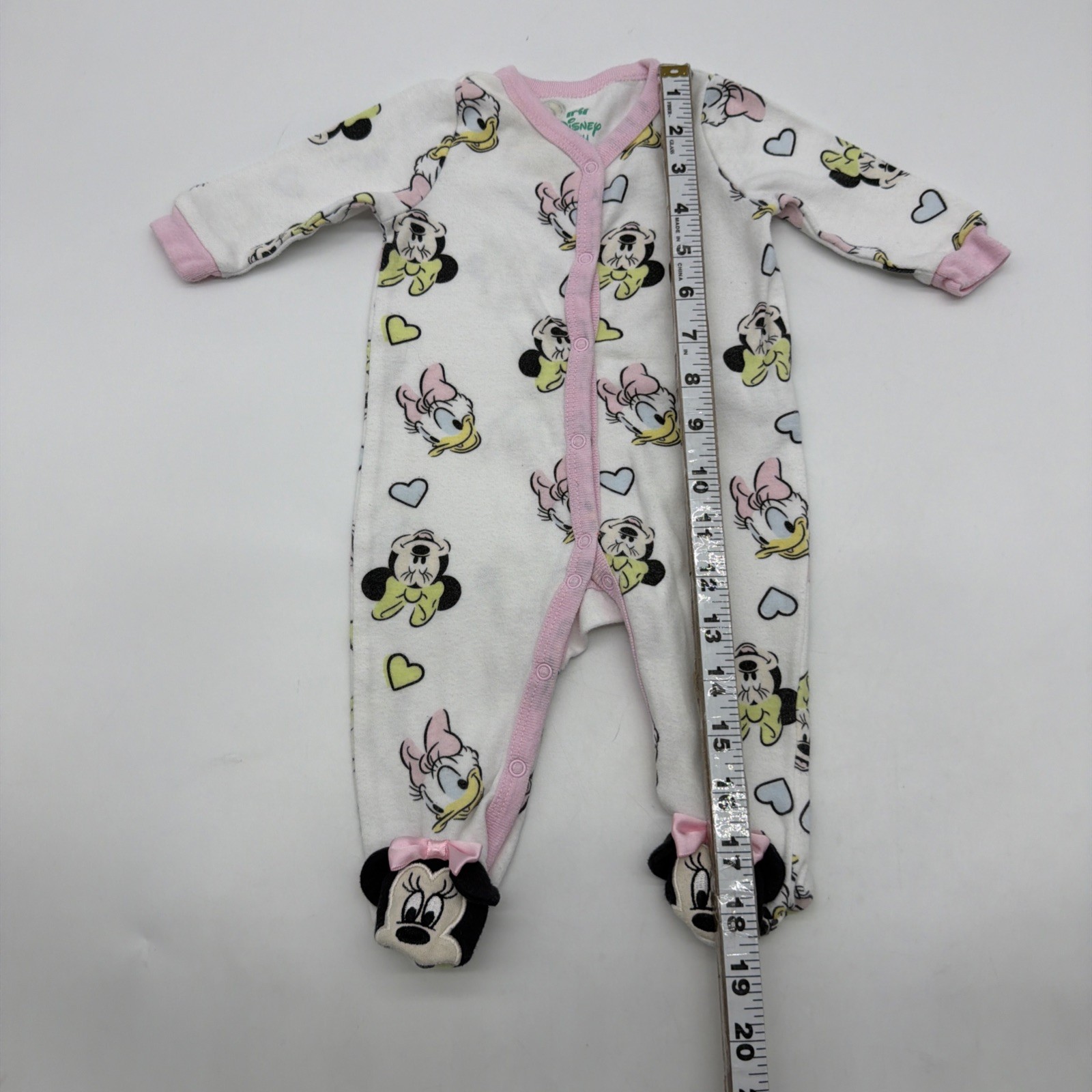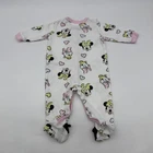 This Disney Baby toddler girls one-piece in size 0/3M features a white AOP design with a logo accent. Made of a comfortable blend of polyester and cotton, this long-sleeve outfit has a crew neck and Snap closures for easy dressing. Perfect for travel, parties, or casual wear, this one-piece is part of the Classic Disney theme and is suitable for all seasons, making it a versatile addition to any little girl's wardrobe. Check pictures for flaws and measurements