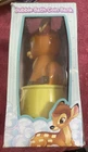 Package has some damage as pictured This is a Disney Bambi Bubble Bath Coin Bank that is vanilla scented and comes in a new box. The product features Bambi, a character from the Disney franchise, in the form of a bath toy made of plastic. It can be used as a coin bank and emits a pleasant vanilla scent. This item is a part of the Disney product line and is based on the Bambi movie and TV show. It is a unique combination of a bath toy, coin bank, and scented item featuring the beloved character Bambi.
