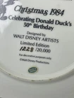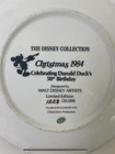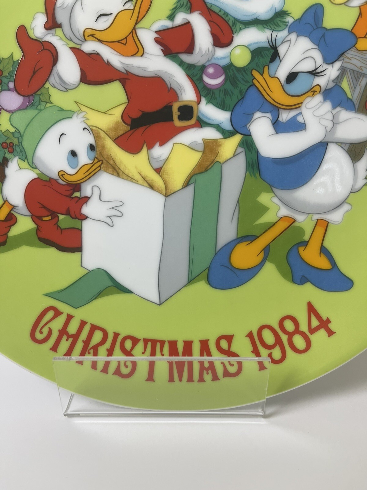 The Disney Collection Christmas 1984 commemorates Donald Duck's 50th Birthday. This collectible plate was manufactured in Japan and is part of the Disney franchise. It features artwork showcasing Donald Duck, a beloved character from Disney. Plate has some imperfections most notably on the back rounded edge- the circular part that lays the plate down flat as seen in listing photographs. The front plate, where the design is; is in great condition and the coloring is very vibrant. All and all this plate is in great vintage condition. Note- listing doesn’t include a plate holder.