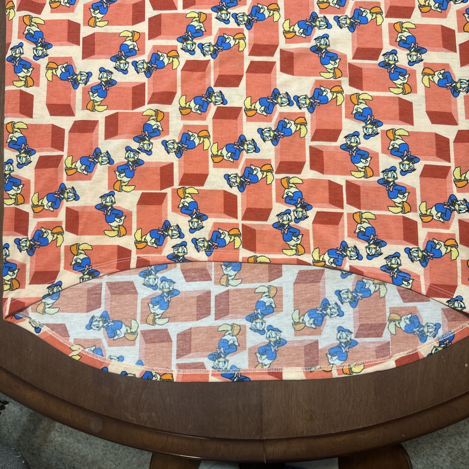 The Lularoe Disney Donald Duck top for women in size small features a short sleeve design and a colorful, multicolor pattern showcasing the beloved character Donald Duck. Made from a comfortable polyester blend material, this pullover blouse is perfect for casual occasions and can be styled for any season. With its playful design and brand reputation, this LuLaRoe top is a fun addition to any woman's wardrobe, combining elements of cartoon, tropical, and American themes. Made in Vietnam, this top is a must-have for Disney fans and fashion enthusiasts alike.