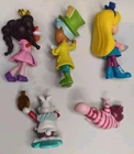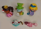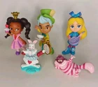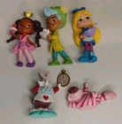 The product is a lot of 5 used loose figures with minimal wear in good condition figures based on Disney Junior's "Alice's Wonderland Bakery" TV show and includes two vintage figures. The figures are inspired by characters from "Alice in Wonderland" such as Cheshire Cat, Alice, White Rabbit, Princess Rosa, and Hattie the Mad Hatter. They are made of vinyl and plastic, with a multicolor design and stand 2 to 3 inches tall. The set is a custom bundle manufactured in 1990's and Just Play 2022 by Just Play under the Disney franchise, and the packaging is not included.