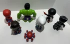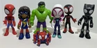Includes all of the character action figures from the original set of Team Spidey and Friends Figure Collection. This complete set is from the Disney Junior Marvel show Spidey and his Amazing Friends. These toys have been played with and do show normal wear (see photos). - Ghost Spider - Spidey - Miles Morales: Spider Man (aka Spin) - Ms. Marvel - Black Panther - Hulk - Trace-E