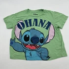 This is a Disney Lilo & Stitch T-Shirt for women in size Medium. It features a graphic print of Stitch, a character from the cartoon, in green color. The shirt has short sleeves, a crew neck, and a pullover closure. Made of polyester and cotton, this T-shirt is easy to care for and has a regular fit. The style is basic and perfect for casual occasions. *Check the images above for the flaws and measurements of the item