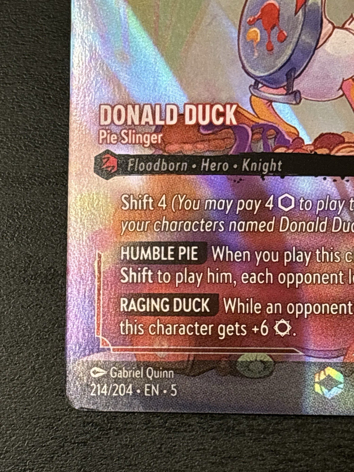 Absolutely love this stunning Enchanted alt art Donald Duck! The shimmering details make it pop, and shipping was fast and secure. A must-have for Lorcana collectors—so vibrant and unique! Perfect addition to any deck or display.
