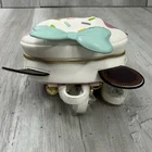Loungefly X LASR Disney Minnie Ice Cream Convertible Mini Backpack Crossbody Bag Has three small marks which can be seen in picture 7-9 Mixed PU Leather material Embroidered sprinkles on frosted pink/white drip Mint puffy Minnie bow Minnie ice cream cone shaped bag Top handle Dual optional adjustable backpack / crossbody straps Fully lined interior with inner pocket Yellow metal Minnie gummy zipper pull Top zip closure Release date: 12/8/2022 Measurements available upon request All measurements are approximate All measurements are taken with item laying flat Double bust, waist, & hip for measurement all the way around Colors may differ based on others computer/phone/etc settings All pre owned items have been washed and steamed All pre owned items have been looked over for flaws and will be noted in listing