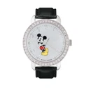 Product Description Quartz movement Quartz movement Case diameter: 35 mm Metal case; Silver dial; Date function Who knew Mickey could look so cool? This hip women's watch from Disney features a fresh, fun Mickey Mouse graphic that stands out against a silver-tone dial that's studded with Swarovski crystals at each Arabic numeral hour marker to complement the crystal-embedded bezel. A chic black leather band joins to this watch's round, metal case and brings out the beauty of its silver-tone hands. Returns are accepted. Buyer must contact us within three days of receiving the items. Buyer must be return or exchange within 30 business days of the purchase. However, the product must be returned in its initial condition. Item return must be with tracking delivery confirmation number. If you have any further questions or concerns, feel free to contact us we will reply back as soon as possible.