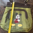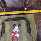 The Disney Mickey Mouse Red Sequins Crossbody Bag Purse in Olive Green Stripes is a stylish and whimsical accessory perfect for travel and casual occasions. This medium-sized rectangular bag features a zip closure and a green shoulder strap, adding a fun pop of color to your outfit. The vintage design with sequin accents and a limited edition Mickey Mouse character adds a touch of nostalgia to the overall hipster and colorful bohemian theme. Made of canvas with a matte finish and metal hardware, this Disney branded bag also includes inner and outer pockets for added functionality. Perfect for fans of Disney and lovers of retro style.