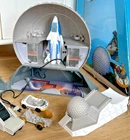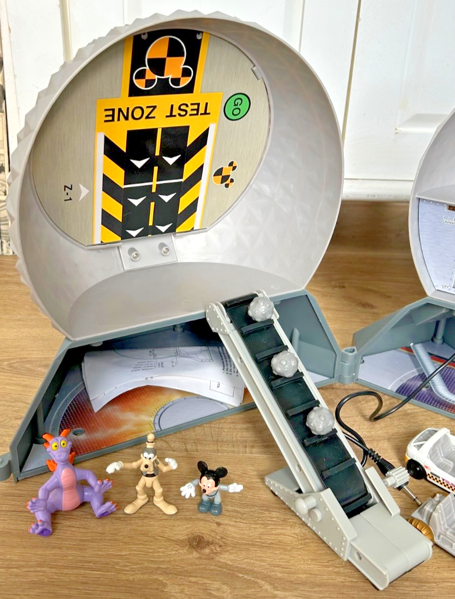 Disney Monorail Spaceship Earth Epcot Adventure Park Playset Disneyland & Walt Disney World Exclusive Sphere RARE This is the Disneyland & Disney World Monorail Epcot play set, complete with figures. The microphone did not work when I inserted the batteries and the rubber band in the car launcher has dried out and will need to be replaced. The back window of the test car has 2 cracks on the frame, but the pieces are firmly attached and are in good order. I believe that the play set is complete and very hard to find. The box is include, which is in good condition. The box has some wear and tears from age. If you would like to omit the box, it will most likely save with the shipping cost. Please contact me with any questions or concerns, thank you!