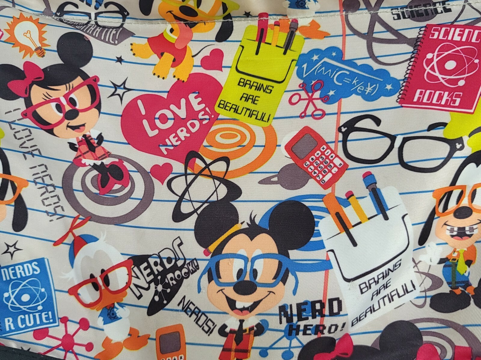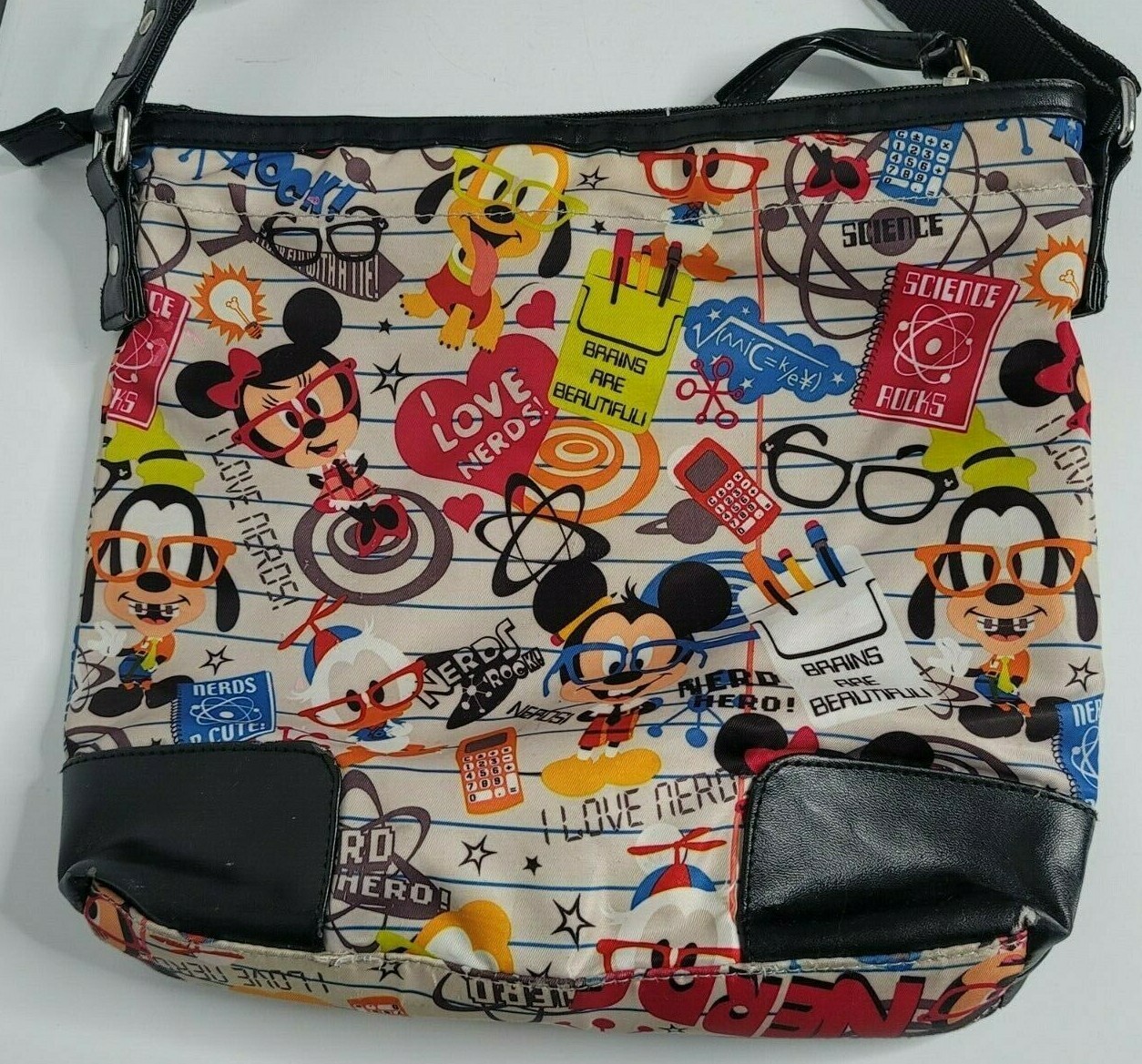 DISNEY PARKS "I Love Nerds" Mickey Mouse Minnie Goofy Pluto Donald Duck Tote Bag Good Used condition! Some wear on bottom. See pictures. These measurements are approximate. Width is 10.5" across. Height is 8". Shipping USPS is the service used for shipping. We ship to all 50 states and APO addresses. International Buyers Import duties, taxes, and charges (typically collected upon delivery or pickup) are the buyer's responsibility and are not included in the item price or shipping charges. Please check with your country's customs office prior to bidding/buying to determine what these additional cost will be. Terms If you have any questions or need information, please feel free to email us via the link above. Please don't forget to check out all my auctions. Good Luck!