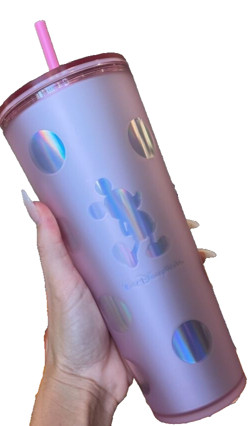 Brand New in Box and Lightning Fast Shipping- Always within 24 hours of payment! Drink-in happy memories of your trips to Disneyworld with this commemorative Starbucks® tumbler and straw. Featuring an allover iridescent polka dot pattern and classic Mickey Mouse silhouette, this pink cup is perfect for your next park day or Disney vacation. Cold beverage tumbler Iridescent polka dot pattern Iridescent Mickey Mouse silhouette Starbucks® logo ''Disneyworld'' logo text Screw on lid Coordinating straw with ring at bottom Part of the Piglet Pink Collection 11'' H x 3 3/4'' Diameter Holds 24 oz.