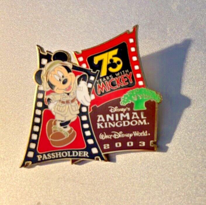 Disney Passholder Exclusive WDW Animal Kingdom 75 Years Mickey Mouse 2003 Collectible Trading Pin. L/E of 7500. Measures approximately 1 1/2" wide by 1 1/2" high. All on original card. Will Combine Shipping.