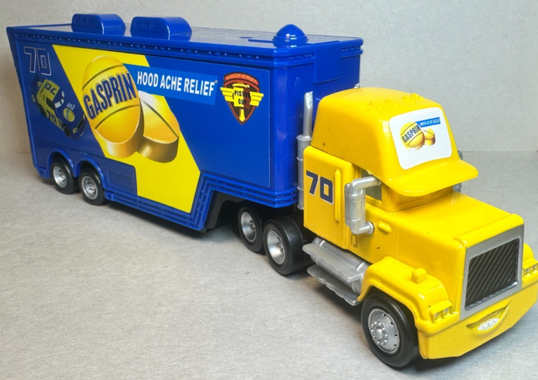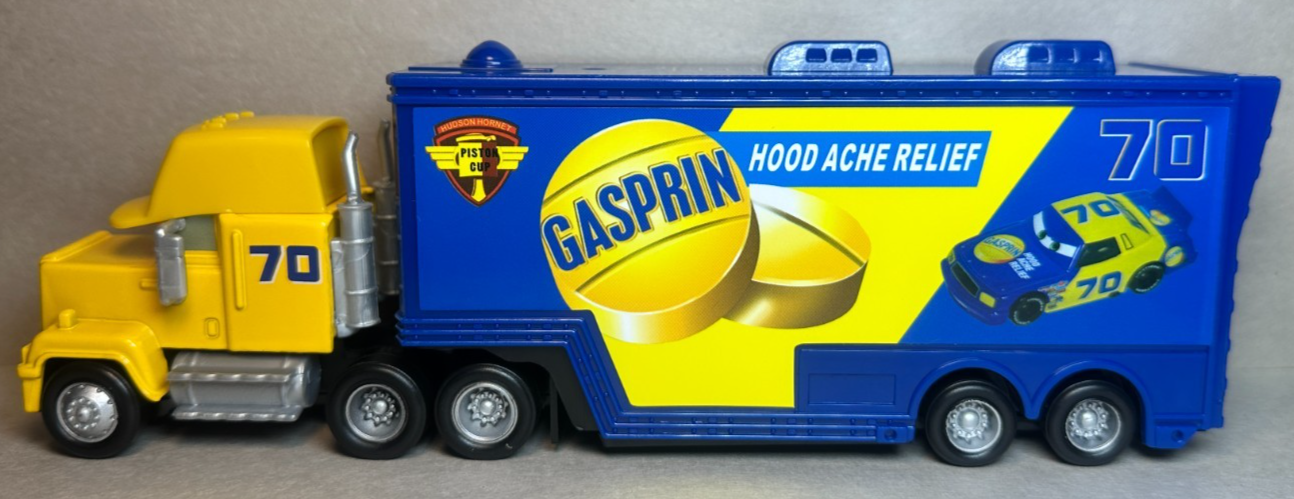 Disney Pixar Cars Gasprin Hauler Semi #70 Piston Cup Diecast Deluxe 1:55 FC (Factory Custom, not made by Mattel) Diecast comes new, just opened. See pictures for condition. Will be shipped well-secured in a box to ensure protection during transit. Ships within 24 hours of your purchase, and arrives in a few days. Thanks for looking. Be sure to ask if you have any questions.