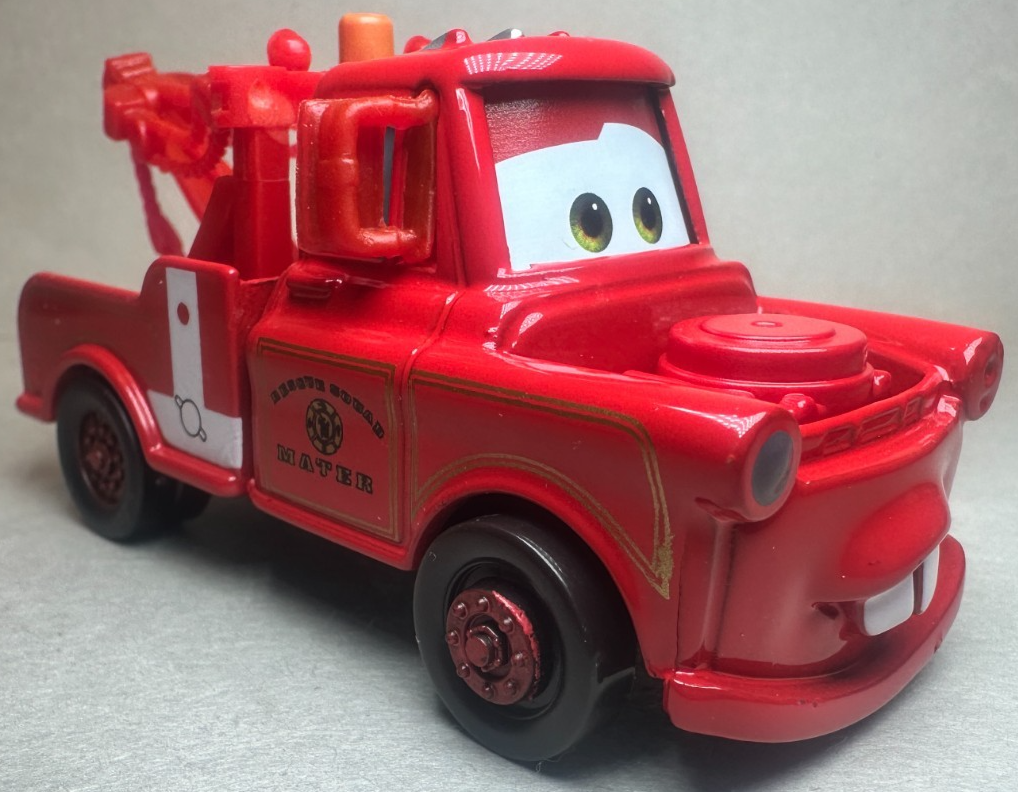 Disney Pixar Cars Toons Rescue Squad Mater Red Firetruck Diecast 1:55 FC (Factory Custom, not made by Mattel) Diecast comes new, just opened. See pictures for condition. Will be shipped well-secured in a box to ensure protection during transit. Ships within 24 hours of your purchase, and arrives in a few days. Thanks for looking. Be sure to ask if you have any questions.