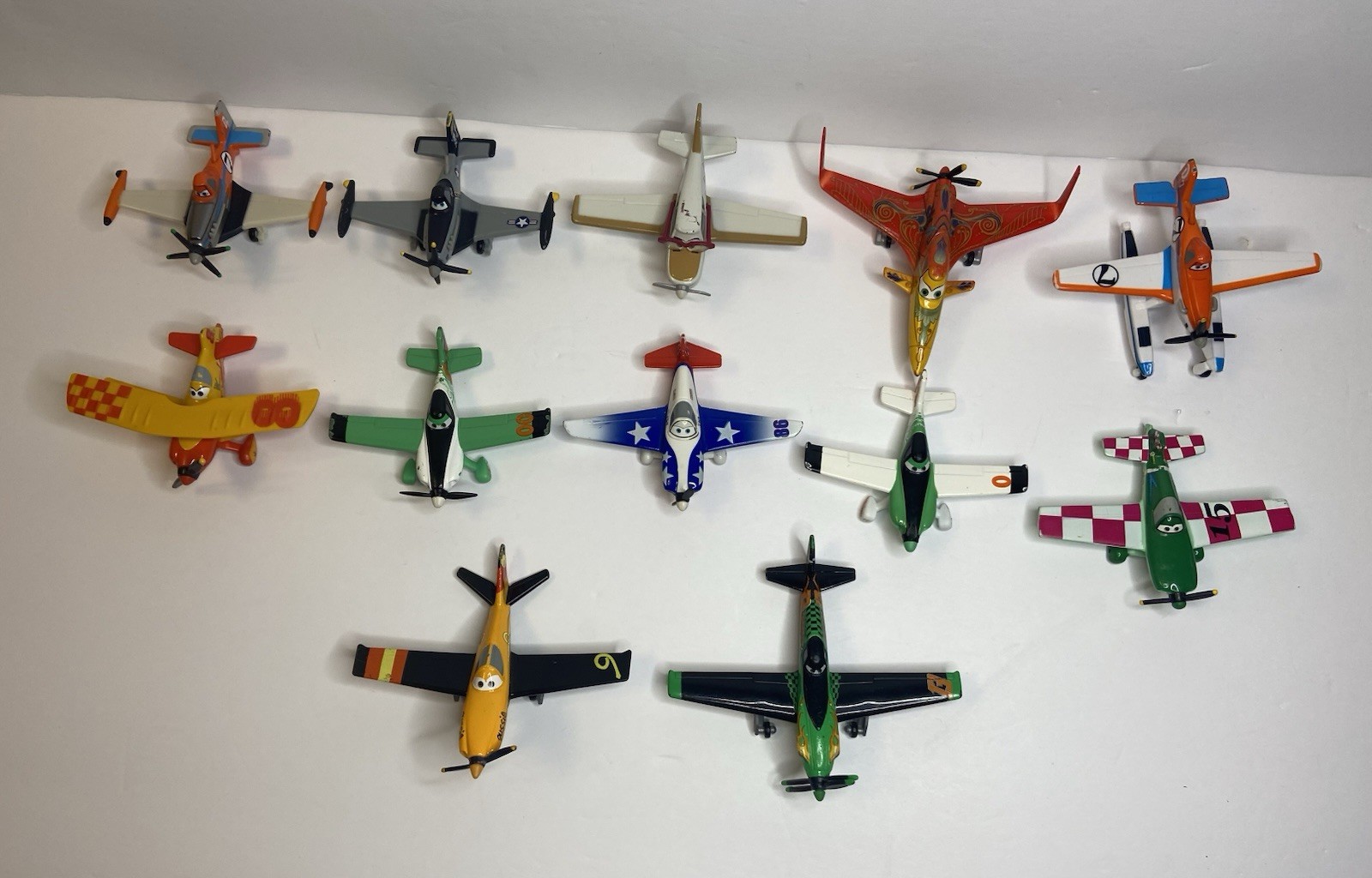 This lot of 12 Disney Pixar Planes action figures includes popular characters such as Jon, Dundee, Ripslinger, Sun Wing,Zed, Dusty Crophopper, Ishani,LJH86 Special,Jolly Wrenches,Barbara Corn Fest,Jan Kowalski, Fire& rescue Ponton.Made of die-cast material with a scale of 1:55, these figures are part of the Planes franchise and were manufactured in 2013. Perfect for fans of the Cars movie and collectors of Disney Pixar merchandise, these action figures offer hours of imaginative play.