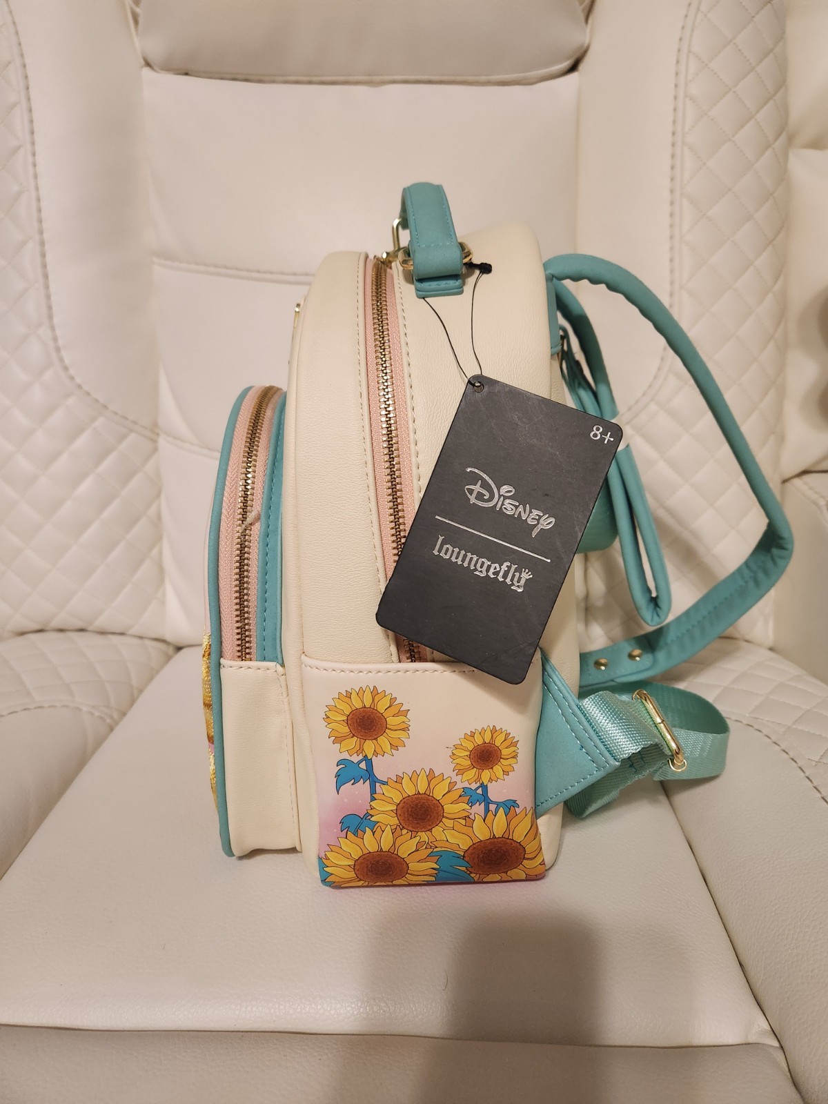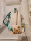 Watch your looks really bloom when you add this Disney mini backpack from Loungefly to your outfits! Pocahontas poses on this bag's front pocket, greeting Flit among a foliage of chenille-detailed sunflowers as they wait to help you carry all of your daily belongings. Also features a sunflower enamel zipper pull, two side pockets, gold-toned hardware, adjustable shoulder straps, and an interior lining pattern of Flit and more sunflowers to complete this floral Disney Princess style! Polyurethane; polyester lining Approx. 9" W x 11" H x 4" D