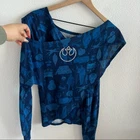 Disney Parks Star Wars Rebel Alliance Open Shoulder Trendy Costume Style Top. All over print. Preowned. Size: Small Underarm-to-underarm: 17” Length: 21.5” Measurements are approximate/vary because of style and are taken flat. 50% cotton/50% modal Lucas Film LTD, Star Wars, Rebel Alliance, Disneyland, Disney World, Disney Parks, Casual, Memorabilia, souvenir ITEM 1135