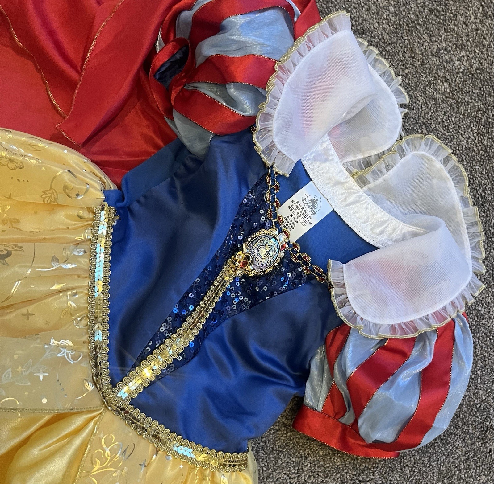The Disney Store Princess Snow White Dress Costume is a delightful choice for little girls size 5-6 looking to dress up for Halloween or any special event. Made by Disney Store, the dress features a classic white color and is designed in a style that accurately represents the iconic Snow White character. Perfect for bringing a touch of magic and whimsy to any costume or outfit, this dress is sure to make any girl feel like a real-life princess.