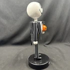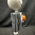 The product is a Disney The Nightmare Before Christmas Jack Skellington Nutcracker, standing at 11 inches tall holding a pumpkin and made of quality wood. This limited edition collectible features the iconic character Jack Skellington in a classic German nutcracker mini retro design, perfect for holiday decor. The nutcracker is reusable every season durable and comes in a decorative standing position, adding a touch of whimsical charm to any collection or seasonal display.