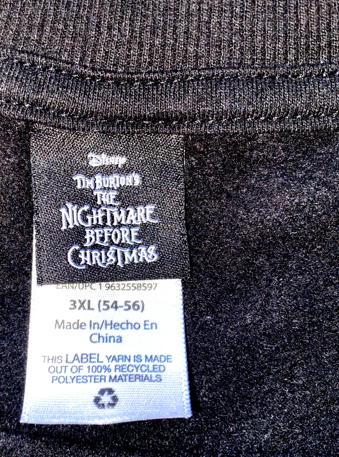 This Disney The Nightmare Before Christmas Jack Skellington sweater in size 3XL is a classic pullover style featuring the iconic character Jack Skellington from the beloved movie. The sweater has long sleeves, a crew neckline, and is made from black knit fabric, making it perfect for casual wear or travel during the winter and fall seasons. With its Halloween, Gothic, and 90s themes, this sweater is a must-have for fans of the movie and those who enjoy unique and stylish clothing pieces. Made by Disney, this sweater is machine washable and suitable for all seasons.