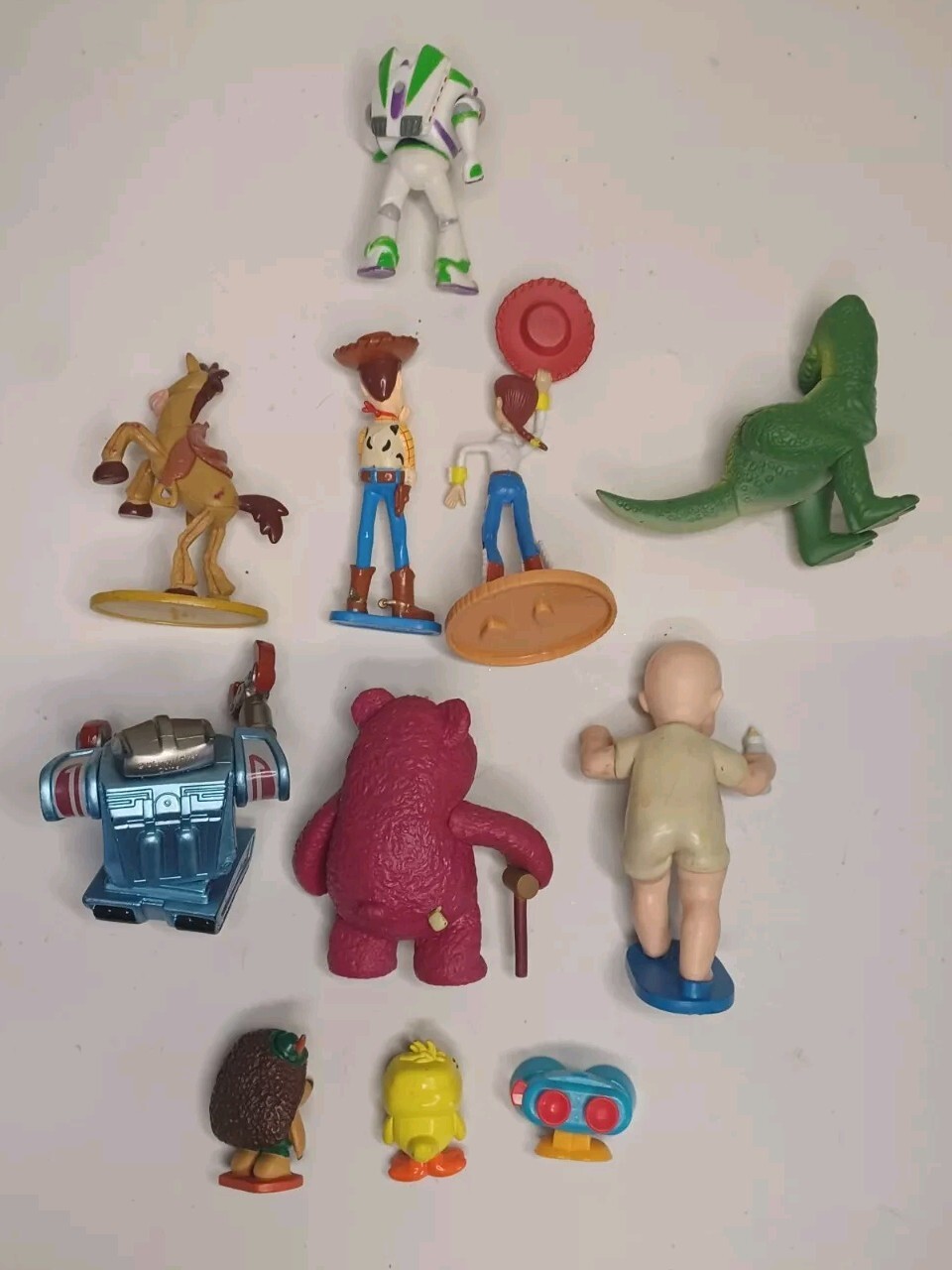 This is a Disney Toy Story figure set featuring characters like Gabby Gabby, Sparks, Woody, Buzz Lightyear, and more. The figures range in height from 1 to 4 inches and are made of plastic. The set includes a total of 11 figures, each representing a character from the Toy Story franchise. These figures are part of an animation studio bundle by Disney, showcasing beloved characters from the popular movie series.