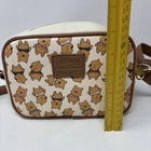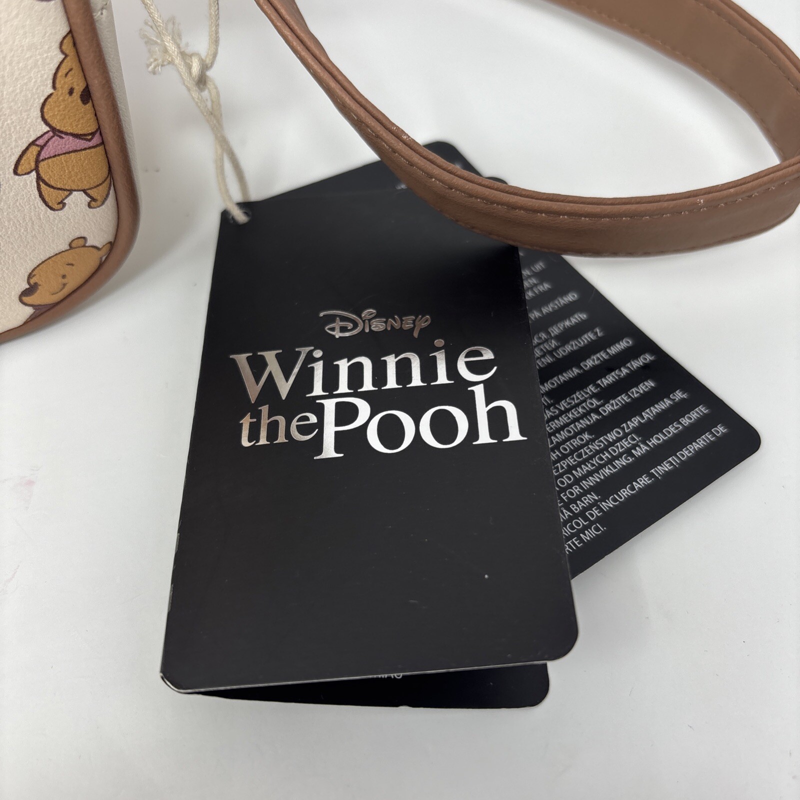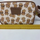 This Loungefly Disney Winnie The Pooh crossbody bag features a chibi design in muted colors, showcasing the beloved character Winnie The Pooh. The mini-sized bag is adorned with an all-over pattern and comes with a zip closure. Made of faux leather, it has an adjustable faux leather strap for easy carrying. Perfect for fans of the classic movie and cartoon theme.