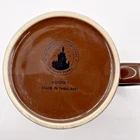 Disneyland Est. 1955 Embossed 12oz Coffee Cup Mug Brown Tan Disney Parks "To All Who Come To This Happy Place" printed inside mug.