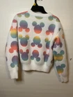 I offer combined shipping. Ask for details before ordering 😊 Thank you! This is a Disney Minnie Mouse sweater in girls size L (10/12), featuring Minnie Mouse ears pattern on a multicolor polyester blend fabric. The sweater has long sleeves, a crew neck, and a pullover closure. It is machine washable and super soft, suitable for casual wear in winter, fall, and spring. The design includes cartoon character themes from Disney's Mickey & Friends.
