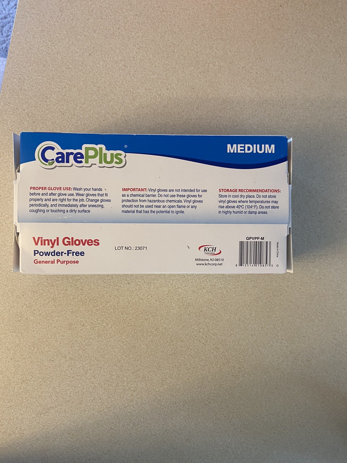 Keep your hands protected with these disposable vinyl gloves from KCH corporation. The gloves are in medium size with a count of 100 per box. One box for 1 price. They are perfect for use in various industries such as healthcare, lab, and dental settings. The gloves are non-latex and made of plastic, making them suitable for people with latex allergies. The product dimensions are 8.7 x 4.69 x 2.48 inches and the gloves weigh 1.1 pounds. Get your hands on these CarePlus brand gloves and stay protected while on the job.