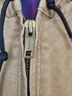Distressed Carhartt J130 Tan Duck Canvas Heavyweight Jacket Y2K Workwear Size XL Distressed Carhartt J130 Tan Duck Canvas Heavyweight Jacket Y2K Workwear Size XL Features 100% Cotton Duck Canvas, Brushed Tricot Lined Main Body & Hood, Quilted Taffeta Sleeve Lining, Triple-Stitched Main Seams For Added Durability, Insulated Front Pockets, Rib Sleeve Cuffs With Self Binding At Sleeve Edge For Extra Durability, workwear, perfectly distressed with fading and stains, streetwear, hipster, thrashed, manufactured May 2013, Y2K, grunge. Measurements laying flat chest 27.5" length 28.5" arm inseam 20" Fabric 100% cotton fill 100% polyester This is a pre-owned item that may show signs of wear. Distressed with oil stains, broken in Carhartt jacket