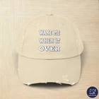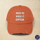 Wake Me When It Over is cool and funny gift for men, mind, women and kids who love Wake me when it Over, Impatience, Waiting, Relief, Anticipation, Patience Test, Sleep Request, Longing for the End, Endurance, Rest Desire, Sleep-Seeking, Weariness, Exhaustion, Tiredness, Boredom, End of Trial, Completion Awaited, Restfulness, Fatigue, Anticipatory Sleep, Weary Waiting, funny, cool, gift PRODUCT DESCRIPTION Made with 100% cotton twill for high-end comfort and durability, these custom distressed hats bring all the style and practicality one needs in daily life. The low profile along with the D-ring closure on a self-fabric hideaway strap ensures both proper protection from the sun and that perfect, adjustable fit. .: 100% cotton twill .: Sewn-in label .: Closure: self-fabric hideaway strap with metal D-ring slider .: Printed using Direct to Film (DTF) technology .: Please note: Due to a special finishing process, distress and color may vary SIZE GUIDE Imperial One size Crown height, in 6.50 Width of front panel, in 7.37 Bill length, in 2.87 Metric One size Crown height, in 16.51 Width of front panel, in 18.73 Bill length, in 7.30 PRODUCT DESCRIPTION Made with 100% cotton twill for high-end comfort and durability, these custom distressed hats bring all the style and practicality one needs in daily life. The low profile along with the D-ring closure on a self-fabric hideaway strap ensures both proper protection from the sun and that perfect, adjustable fit. .: 100% cotton twill .: Sewn-in label .: Closure: self-fabric hideaway strap with metal D-ring slider .: Printed using Direct to Film (DTF) technology .: Please note: Due to a special finishing process, distress and color may vary SIZE GUIDE Imperial One size Crown height, in 6.50 Width of front panel, in 7.37 Bill length, in 2.87 Metric One size Crown height, in 16.51 Width of front panel, in 18.73 Bill length, in 7.30