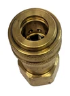 Details Compatibility & Interchange Data Foster 3, 4, 5 and 6 Series Parker 30 - Series Automatic Interchange Hansen 3000, 4000, 5000 and 6000 Construction Machined components are manufactured using solid bar stock. Stainless steel balls, retaining rings and springs maximize corrosion resistance and extend service life. Nitrile (Nitrile Rubber) seals are standard Steel componentry is plated using ROHS Compliant Trivalent Chrome. Steel prong valve How It Works To disconnect, begin by holding the hose on the nipple side with three of your fingers, leaving your thumb and index finger free. Grab the sleeve with your thumb and index finger and begin to pull the sleeve towards the palm of your hand. After pulling the sleeve, the nipple will move out of the coupler slightly. Continue to hold the hose and coupler sleeve until all air is fully exhausted. After the line is fully exhausted, you are able to safely separate the nipple from the coupler. Safety Notes It is important to be safe when installing quick disconnect couplings into a pneumatic circuit. Never install a pneumatic coupling directly into an air tool, use a piece of hose that is at least 18" long, between the tool and the coupling, to prevent damage to the coupling. To protect the operator, safety devices, such as a safety check valve and safety cable should be installed in case there is a hose or coupling failure. Specifications Rated pressure for connected Brass Coupler & Brass Plug: 500 PSI (35 bar) Maximum Working and 10,000 PSI (670 bar) Burst WARNING : This product contains lead, a chemical known to the State of California to cause cancer and birth defects or other reproductive harm.