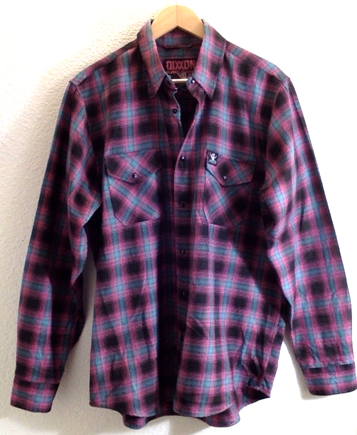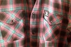 GOOD used condition, beautiful soft flannel, snaps and buttons, see photos. Black, teal, pink. Extra buttons are still attached. Measures approx. 24 inches across the chest, 34 inches long collar to hem in back. Ships via USPS* ground advantage, carefully packed in waterproof padded mailer. Thanks for looking, and enjoy!