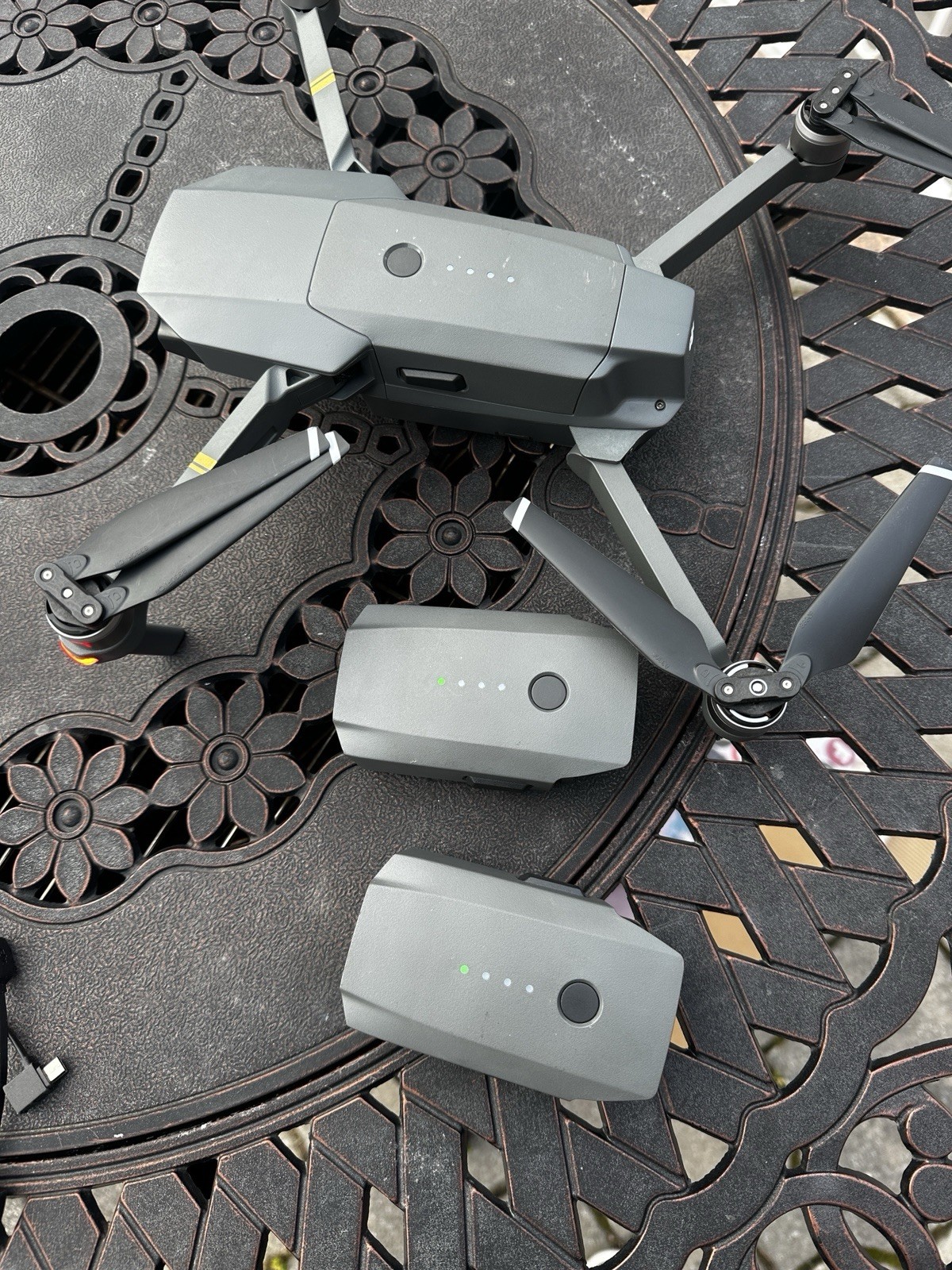Selling my used Dji Mavic Pro Drone Comes with three batteries ensuring long flight time Comes with charger, not included in the photos. Comes with a convenient bag to store everything. Drone works perfectly fine with minor signs of wear. Thank you for checking out my listing.