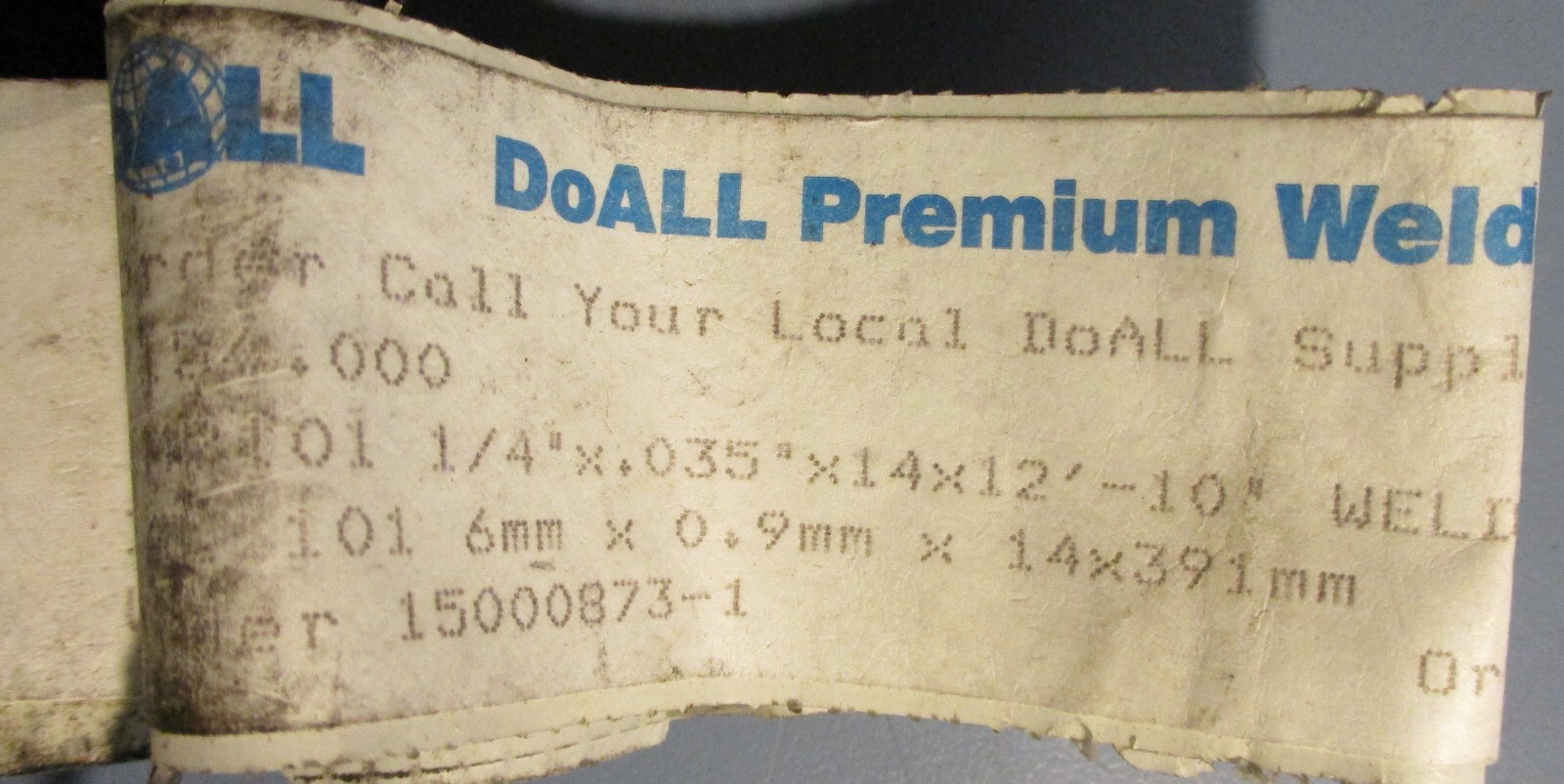 Saw Blade For sale is a Doall 303009154.000 Premium Welded Band Saw Blade 1/4"X0.35X14X12 Item appears new and in excellent condition. Will come as shown and with what is pictured. May show minor imperfections but nothing that will impact performance. Thank you for looking and please let us know if you have any questions. eTech Surplus Rochester, NY Shipping: Charged according to location. Please note that eBay charges sales tax, we do not. We at eTech Surplus strive to honestly and accurately describe each item we sell. Please feel free to contact us with any questions. International Buyers - Please Note: Import duties, taxes and charges are not included in the item price or shipping cost. These charges are the buyer's responsibility. Please check with your country's customs office to determine what these additional costs will be prior to bidding or buying.