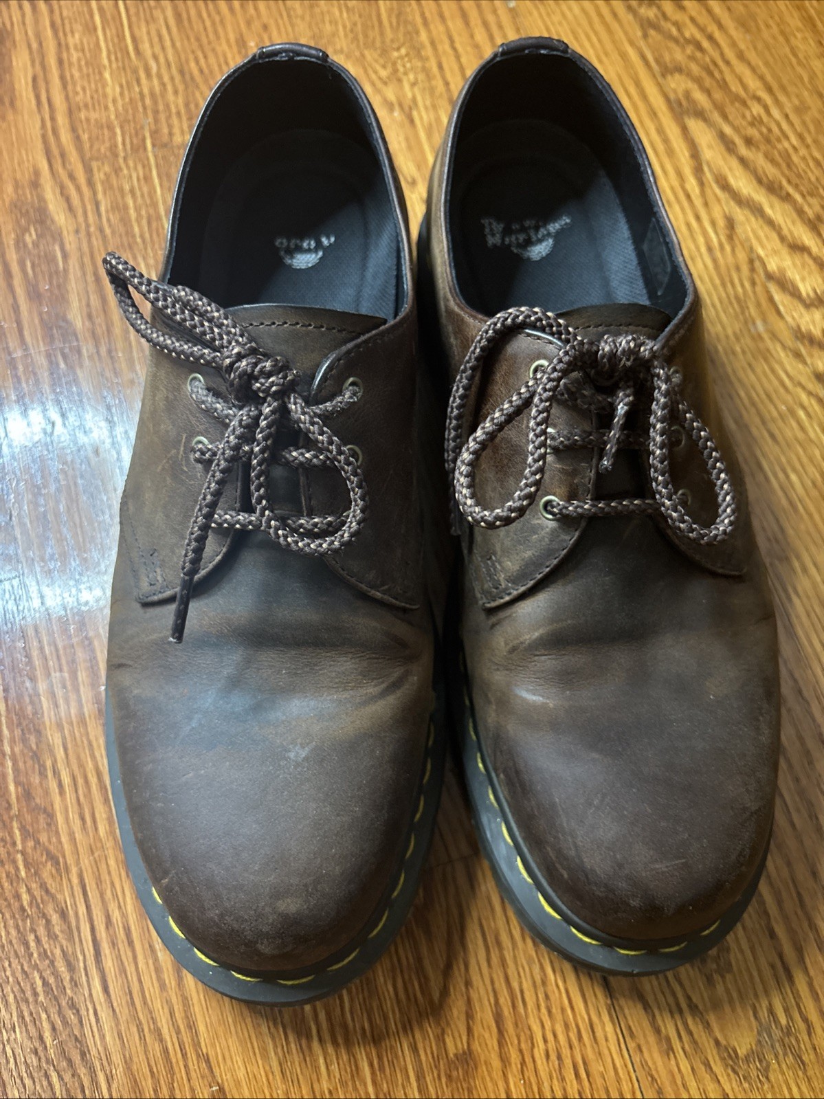 The Doc Dr Martens Men's Lace-Up Shoes in brown, size 12 US 46 EU are a stylish and durable footwear option for men. With a classic lace-up closure and solid pattern, these shoes are perfect for casual occasions. Made of leather with a round toe shape, they offer comfort and are suitable for all seasons. The Dr. Martens brand is known for its quality and longevity, making these shoes a reliable choice for those looking for a 90s-inspired Oxford style with a modern twist.