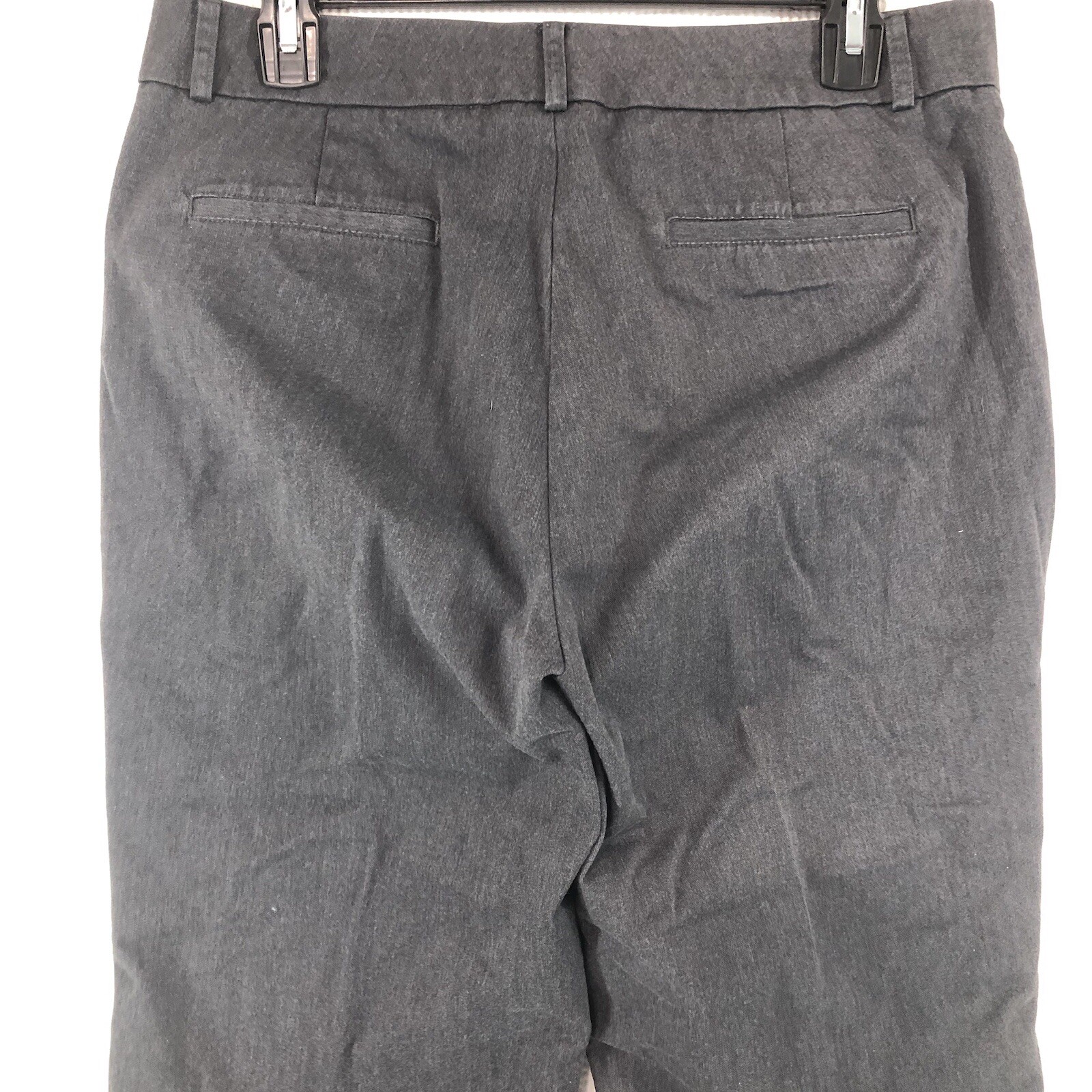 The product is a pair of women's Dockers chinos pants in size 10 and in a stylish gray dress color. These pants feature a solid pattern, flat front design, and have a mid-rise fit with a straight leg style. Made from a comfortable cotton blend fabric with a hint of stretch, these pants are ideal for casual or business occasions. They also come with pockets for added convenience. With a 32-inch waist size and a 27-inch inseam, these pants offer a versatile and practical wardrobe option for women seeking a classic and timeless style.