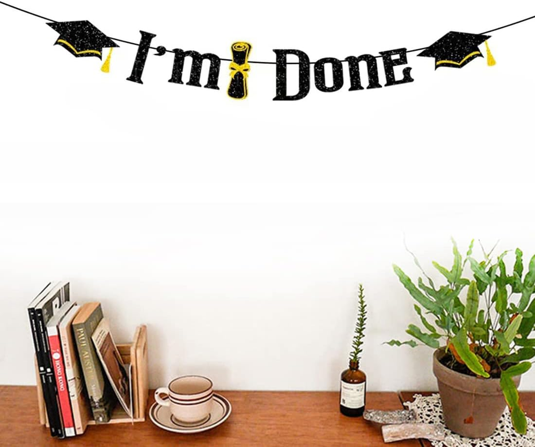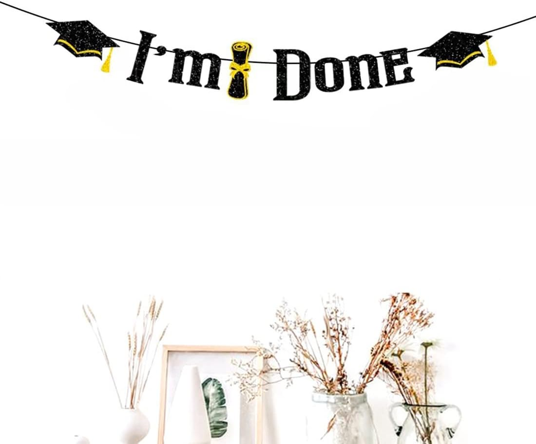 Store New Arrivals Add to Favorite View Feedback Contact Doctoral Cap I'M Done Banner for Graduation Anniversary Celebration Party Decorations Description Color Black Material Paper Country of Origin China Package Dimensions 8.78 x 6.97 x 0.51 inches Item Weight 1.13 ounces Shape Triangular Recommended Uses For Product Party Occasion Graduation, Anniversary Special Feature Lightweight Fabric Type Paper Product Care Instructions Hand Wash Only Made of high quality paper material with bright color. Well printed and good looking.It's a perfect decorations for decorating your graduation party. Perfect quick dessert for themed party. Apply to b Graduation Anniversary Celebration Party Decorations. You can create surprises for your children, girlfriends, or dear family members, and you'll see the smiles on their faces. Meet your quality needs, Our product design will highlight your gathering, And your satisfaction is our pleasure. Please keep them in a cool dry place to maintain their colors and extend their storage life; Inedible confetti, please keep away from children. Note: the whole banners are long, please keep them away from kids to prevent winding risk.Please note that this items are single sided only, back is white. Product Description Policy on Product Sourcing and Fulfillment Dear Valued Customers, We would like to clarify an important aspect of our business operations to ensure transparency and trust in our relationship with you. Product Fulfillment: Fulfillment by Amazon (FBA): The products are stored in Amazon Fulfillment Centers. This storage solution ensures that the inventory is kept in a secure and climate-controlled environment, which helps maintain the quality and safety of the products. Efficient Delivery: Utilizing Amazon's fulfillment services allows us to leverage their robust logistics network to provide you with fast and reliable shipping. This means you receive your purchases in a timely manner with the added assurance of Amazon's trusted delivery systems. Customer Assurance: Quality Control: Every product is carefully selected and undergoes rigorous quality checks before being listed for sale. Our commitment is to provide you with high-quality items that meet your expectations. Secure Storage: Amazon's Fulfillment Centers are renowned for their high standards of security and efficiency. Your products are stored safely until they are shipped to you. Customer Support: Should you have any questions or concerns regarding your purchase, our customer support team is readily available to assist you. We are dedicated to ensuring your satisfaction with every transaction. We appreciate your business and are committed to providing you with a seamless and satisfactory shopping experience. Thank you for your trust and understanding. Sincerely, -Manager- Shipping Policy and Expectations Dear Valued Customers, We are committed to ensuring that your package arrives as quickly as possible. However, we kindly ask for your understanding regarding certain factors that may occasionally affect shipping times. Our Commitment: Prompt Processing: We strive to process and dispatch your orders promptly to minimize any delays. Reliable Shipping Partners: We work with reputable shipping companies to ensure your packages are handled with care and delivered efficiently. External Factors: While we do everything within our power to expedite your order, please note that some factors are beyond our control: Weather Conditions: Severe weather can impact shipping routes and cause delays. High Postal Traffic: During peak seasons, such as holidays, the increased volume of packages can lead to longer delivery times. Shipping Company Performance: The performance and schedules of shipping companies may vary, potentially affecting delivery times. We appreciate your patience and understanding in these situations. Rest assured, we are doing everything possible to get your package to you as soon as possible. Customer Support: If you have any questions or concerns about your order, please do not hesitate to contact us. Our customer support team is here to assist you and provide any necessary updates on your shipment. Thank you for your trust and continued business. Shipping Policy and Customer Satisfaction Shipping Information: Service Area: We offer shipping to the lower 47 states. Please confirm with us about the delivery date before completing your purchase. Thank you. Address Requirements: We do not accept P.O. Boxes. Please provide a physical address for delivery. Shipping Restrictions: Unfortunately, we are unable to ship items to the state of Ohio and California due to shipping agreements and restrictions. International Shipping: eBay International Shipping Hub: For shipping outside of the continental USA, we only use eBay's International Shipping Hub. The item is shipped to Illinois and then sent to the rest of the world. Duties and Taxes: International customers are responsible for all duties and taxes. Please continue to check out to calculate the shipping costs for your country. Inquiries: Messages regarding eBay's International Shipping Program must be directed to eBay exclusively. Customer Satisfaction: We try our very best to ensure every customer is completely satisfied. If there's a problem, please message us! We're happy to help. If you are happy with your purchase, we would really appreciate your positive feedback. Once positive feedback is left, our system will automatically leave positive feedback in return. Thank you for your business and for helping us maintain a positive and trustworthy marketplace. Return and Exchange Policy Dear Valued Customers, We strive to ensure that you are satisfied with your purchase. However, we would like to clarify our policy on returns and exchanges. No Returns Policy: No Returns: We do not accept returns. Please make your purchase carefully and review all product details before completing your order. Damaged or Non-Functional Items: Replacement or Exchange: I