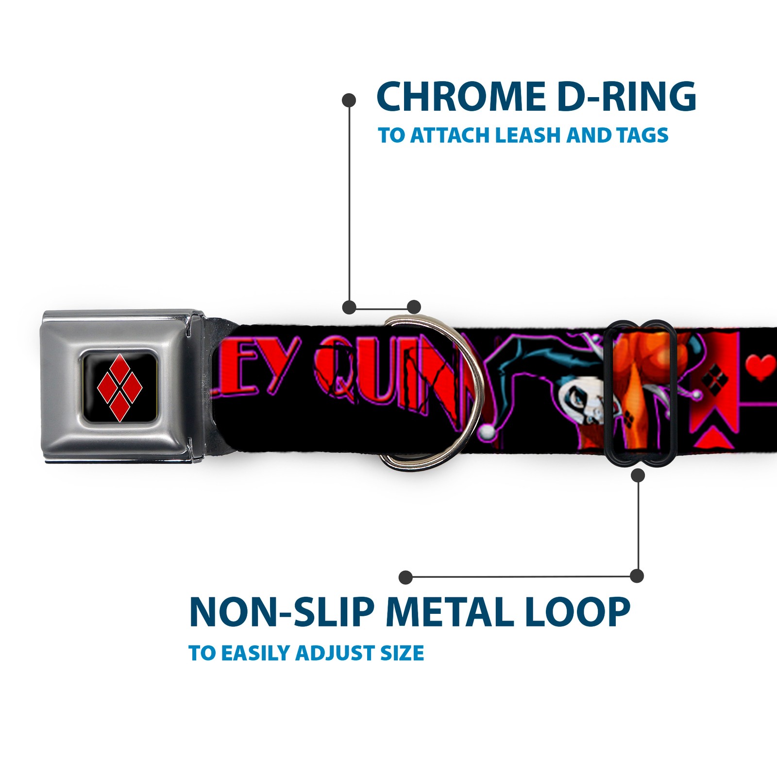 Further Details Title: Dog Collar JKG-Harley Quinn Diamond Full Color Black/Red HARLEY QUINN Bomb Poses/Suits Black/Purple/Red Small 9.5-13" Condition: New Description: Your dog will be the talk of the town when people notice they're wearing this awesome SeatBelt Dog Collar! Made from high-density polyester and durable steel components, this collar is built to last. It features beautiful vibrant artwork. The buckle is a miniature authentic SeatBelt Buckle, so you press the center button to release the clasp. This product is assembled in the USA by Buckle-Down Inc. and officially licensed by DC Comics. Age Level: All Life Stages Brand: Harley Quinn Color: Red Closure: Buckle MPN: WJK012-1.0-S Item Weight: 81g Material: Polyester Dimensions: 12 x 1 x 1 inches; 2.89 ounces Dog Breed: All Breed Sizes Item Length: 304mm Item Width: 25mm Item Height: 25mm Size: 1" Wide - Fits 9.5-13" Neck - Small Number of Items: 51770 Type: Dog Collar Seatbelt Buckle Pattern: Dog Release Date: 08/06/2015 Fits 9.5-13" neck size and is 1" wide. The buckle is a miniature authentic SeatBelt Buckle, so you press the center button to release the clasp. Made from high-density polyester and durable steel components, this collar is built to last and features beautiful vibrant artwork. This patented product (D609,408) is assembled in the USA by Buckle-Down and is officially licensed by DC Comics. Matching leads/leashes available. Missing Information? Please contact us if any details are missing and where possible we will add the information to our listing.