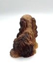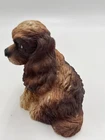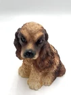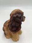 Here we have a very cute vintage resin figurine of a cocker spaniel. She is brown and tan and approximately 4" tall. There is some wear which I have pictured. I believe her eyes are glass. She looks a little annoyed if you ask me, but she is still very cute, nevertheless. It almost looks like she has her eye on something on the ground and is watching it very intensly! She reminds me of "Lady" from "Lady and the Tramp" but she is more of a brown than auburn. She is sitting down, and her tail is wrapped around her bottom. Please look at all the pictures as they are part of the description. Thank you for visiting my shop!