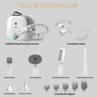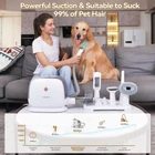 šćProfessional pet grooming vacuum kitćAre you annoyed at the messy scene caused by the traditional dog clipper? This dog grooming vacuum is designed with powerful vacuum that can capture 99% of hair into the dust cup, hair won't get on your clothes, and no cleaning up after grooming. Don't worry about hair spreading all over the house again. š± ćPet-Friendly Low NoisećQuipped with noise reduction technology, this pet vacuum for dogs operates at a low noise level during grooming sessions. This feature ensures nsure your pet won't be scared or uncomfortable during the process.ćNoticeć Before using the pet grooming vacuum, please let pets adapt to the sound of the product for a while, and then use it for your pet. šćGrooming vacuum for dogs at homećOur dog grooming vacuum for shedding comes with 7 pet grooming tools:grooming brush and de-shedding brush help to promote a sleek and healthier hair; dog clipper with 5 guard combs to do the haircut; Dog Hair Clippers for trimming the hair on the bottom of your pet's feet; Dog Paw Trimmer Nail Grinder for building pet nails; Nozzle head and cleaning brush can be used for collecting hair on sofa,gap,carpet and floor. š¶ćLarger Dust Cup & Easy Empty and ćWith a detachable 2.0L Large Capacity dust box,easy-to-empty,do not need to empty often during grooming. The removable dust cup is equipped with an easy empty lid for -click quick dust removal,empty after cleaning.The pet grooming vacuum kit is highlighted with space-saving feature, we provide storage bag for easy storage. šćTime & Budget Saving & Idea GiftćThe pet hair brush vacuum comes with everything you need to give your dog or cat a DIY salon day, saving you budget and time from monthly trips to the dog groomers. It's an idea gift for friends,family members and partners with pets.