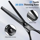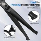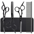 ★Professional Pet Grooming Scissors Kit★-The kit includes 1 × 6.5-inch thinning shear, 1 × 6.5-inch curved scissor, 1 × 6.5-inch straight scissor, 1 × pet comb, 1 × cleaning cloth, 1 × black leather case ★Round-end Tips for Maximum Safety★-Never need to worry about poking your pet's skin, because all dog scissors for grooming have rounded end tips, especially when trimming sensitive areas (such as face, ears, eyes, nose, paws ★Extremely High Quality Stainless Steel★-The round tips of pet scissors are made of 4CR Titanium Coated Stainless Steel, which is sharp and heavy-duty without pulling pet's hair ★Ergonomic Design for Comfort★-Elaborate design helps to fit in hand comfortably and minimize fatigue for long time use, rubber bumper at the handle prevents accidental clamping of the fingers and avoid making a loud noise to frighten your pet like electric clippers ★User-Friendly Design★-Designed with ease of use in mind, this grooming kit allows even beginners to achieve professional results without any hassle.