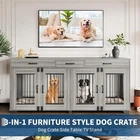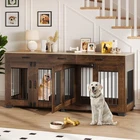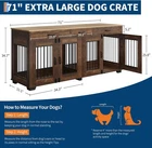 Product description Garvee 71 Inch Dog Crate Furniture Extra Large Storage Space Dog Crate & Tv Stand Dog Cage Furniture for 2 Dogs Wide Top Surface Is it easy to assemble? Yes, we provide detailed installation instructions and optimize the installation process and instructions, including each screw and panel are clear and easy to understand, adults can also assemble it easily. What size dogs are suitable for this 71-inch double cage? This 71-inch furniture-style double cage is suitable for most small, medium and large dogs. We recommend that you measure the size of your dog before purchasing. The size of a single room in the cage is 34.3"*22.1"*25.8". Is it sturdy and chew-resistant? Yes! It features 0.5-inch thick metal pipes and wooden boards, which are 0.15 to 0.2 inches thicker than a standard double dog crate. The thicker materials provide better load-bearing capacity and create a more durable product.