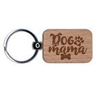 Dog Mama Mom Paw Print Engraved Wood Rectangle Keychain Tag Charm