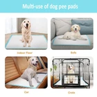 pee pads are made of thick and absorbent good-quality materials. When dog urine flow thru the absorbent layer, the high absorbent polymer absorbs and turns urine into . The absorbent polymer can hold up 6 cups of liquid. The back layer is made of water-proof PE film, which prevents wetting your floor. Dog and puppy pee pads for indoor, outdoor, or car use; Good to use for dogs, cats, rabbits, and small animals. High absorbent Leak-proof back Quick-dry surface