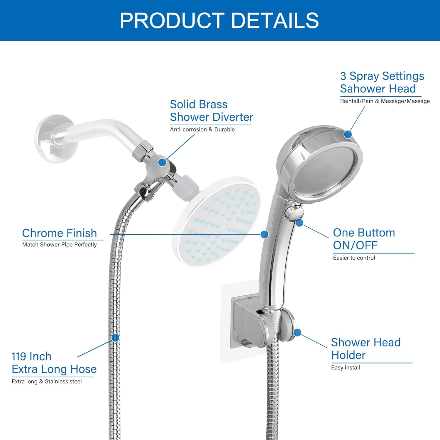 Store New Arrivals Add to Favorite View Feedback Contact Dog Shower Sprayer Attachment Set - 3 Spray Modes Showerhead, One-Click Operation, 3 Way Shower Diverter, 119-Inch Stainless Steel Hose, Easy Installation Description Item Package Quantity 1 Style 3 Spray Modes Showerhead Finish Polished Mounting Type Wall Mount Color Silver Item Weight 2.33 pounds Material Stainless Steel Batteries Required? No Hose Length 119 Inches Installation Method Wall Mounted Shape Round Batteries Included? No Included Components Shower Head, Valve, Hose, Shower Arm, Shower Bracket, Mounting Hardware Finish Type Polished Product Dimensions 119 x 5 x 5 inches 【Dog Shower Sprayer Attachment Set】: A complete dog bath system includes dog shower sprayer head,shower arm diverter(brass adapter valve),flexible stainless steel hose,shower head holder and spare parts, and rubber washers. Quick to install and easy to use, allowing you and your dog to have a happy wash. 【3 Spray Modes Showerhead】:This dog washing shower attachment includes massage/jetting(rain and massage)/rainfall modes. The water flow of this handheld dog sprayer is stable and strong enough to easily rinse dirt easily from pet's thick fur and meet your different pets or others cleaning needs. 【One-click Operation】: The pet handheld shower is controlled easily with an ON/OFF switch ,which lets you brush and rinse your pet simultaneously. 【3 way Shower Diverter】It is made of sturdy brass, chrome-plated to withstand changes in water pressure and daily wear. The 3-way shower diverter feature smoothly switches water from a handheld shower or sprayer to a fixed shower with an on/off valve, allowing two sprays to be applied at the same time. This shower arm diverter has 1/2 inch IPS female inlet and 1/2 inch IPS male outlet,universal for most of USA bathroom. 【119-inch Stainless Steel Hose】: This Pet shower attachment kit offers a 119 inch flexible hose that is long enough for you to rinse your dog, even in every corner of the bathroom or tub. Made of stainless steel, high durability, tarnishing & corrosion resistance, high pressure and leak proof, it provides a better washing experience for your pet 【Easy Installation】The dog shower head is easy to install,no plumber required.No drilling adhesive shower head holder easily install on any smooth surface. You can install within minutes by following the instructions. Product Description SPECIFICATIONS Package Included 3 Modes Dog shower sprayer head + Brass 3-way shower arm diverter + Stainless steel hose + shower head holder and spare parts + rubber washers+ Tape 3 Spray Modes Showerhead Massage + Jetting(Rain and Massage) + Rainfall One-click Operation Our pet handheld shower is controlled easily with an ON/OFF switch ,which lets you brush and rinse your pet simultaneously. 3 way Shower Diverter Features smoothly switches water from a handheld shower or sprayer to a fixed shower with an on/off valve, allowing two sprays to be applied at the same time. 119-inch Stainless Steel Hose 119 inch flexible stainless steel hose that is long enough for you to rinse your dog, even in every corner of the bathroom or tub. iFealClear 3 SPRAY MODES SHOWERHEAD & 3-WAY SHOWER DIVERTER iFealClear Handheld Dog Shower Sprayer Attachment Shower Sprayer Attachment Add to Cart Add to Cart Add to Cart Add to Cart Customer Reviews 4.7 out of 5 stars 65 4.7 out of 5 stars 65 3.5 out of 5 stars 19 4.7 out of 5 stars 18 4.4 out of 5 stars 71 4.2 out of 5 stars 15 3.0 out of 5 stars 2 Price $21.49 $ 21 . 49 $49.99 $ 49 . 99 $48.99 $ 48 . 99 — — — $39.99 $ 39 . 99 Item Dog Handheld Shower Head Dog Shower Sprayer Sink Hose Faucet Sprayer Sink Faucet Shower Sprayer 12-inch Shower Head Combo 10-inch Shower Head Combo 10-inch Shower Head Combo Shower Hose Length 119 Inch 90 Inch 90 Inch 90 Inch 71 Inch 71 Inch 71 Inch 3-Way Diverter Shower Arm Diverter Shower Arm Diverter Faucet Diverter Faucet Diverter Shower Arm Diverter Shower Arm Diverter Shower Arm Diverter Spray Mode 3 Settings 2 Settings 2 Settings 3 Settings 7 Settings Stainless Steel Hanheld Spray Stainless Steel Hanheld Spray Adapter Inculded ✘ ✘ ✔ ✔ ✘ ✘ ✘ ABOUT US We offer the best prices around on high quality products. Our E-store includes media such as books, movies, music and games while offering electronics, toys, sporting apparel, clothing, tools, general home, garden items and more. SHIPPING We are always working hard to ensure your package arrives as soon as possible. Please understand that some factors like weather, high postal traffic, and the performance of shipping companies are outside of our control. We offer free shipping to the lower 48 states and ship within 2 business days of payment, usually sooner. We do not accept P.O. Boxes. Please provide a physical address. For shipping outside of the continental USA, we only use eBay's Global Shipping Program.The item is shipped to KY and then sent to the rest of the world. International customers are responsible for all duties and taxes. Continue to check out in order to calculate costs for shipping the item to your country. Messages regarding eBay's Global Shipping Program MUST be directed at eBay EXCLUSIVELY. RETURNS We offer a 30-Day Return Policy on items which you are not completely satisfied with. You have the option for a full-refund or an exchange of the item. No returns are available on items shipped outside of the USA. PAYMENT We accept PayPal. CONTACT US This page content is yet to come Please ad us to your favorite seller and visit again later Thank You CUSTOMER SATISFACTION We try our very best to make sure every customer is completely satisfied. If there's a problem, message us! We're happy to help. WE ACCEPT Copyright © 2021 AutoDS. | All Rights Reserved