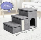 Dog Stairs Pet Stairs for High Bed Climbing: The main function of the design of the dog ramp is to help your pet easily climb to the high bed, sofa or chair, which is convenient for you and your pets to be close to each other 3-IN-1 Dog Steps: The pet ramp is used for pets to climb up, the highest step is designed as a small condo that can be used as a resting area for dogs, and the remaining 2 steps are designed as storage bins for convenient storage areas for pet clothes, toys, or other supplies Comfortable and Cosy Pet Steps: The stairs for the dog to step on contain foam, which is soft and comfortable to reduce the pressure on the dog's paws and joints, and the small flat is equipped with a soft mat for the dog to sleep peacefully Non-slip Dog Stair with Stability: The bottom of the storage steps are fitted with removable wooden pads to ensure the stability of the steps, while the non-slip design on the bottom of the steps ensures that the steps won't move when the dog runs or jumps up them Dog Stairs for Small Dogs: This step can be used for for short-legged dogs to climb up, and also provides easy access for older or injured pets, so you don't have to worry about them not being able to climb onto the bed or sofa Foldable and Portable Dog Ramps: The dog steps for high bed are easy to install and are foldable in design for easy storage and on-the-go portability, ensuring that your pet always has a reliable way to get to their favourite places Pet stairs not only make it easy for your pet to climb up a high bed or sofa, but they are also able to become part of your home's elegant décor