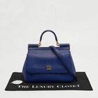 Our eBay Store About Us Contact Us Add to Favorite Sellers Dolce Gabbana Miss Sicily Medium Blue Leather Top Handle Bag A deep blue shade gives this Dolce & Gabbana Miss Sicily a striking look. The grainy leather adds a bit of texture, while the gold-tone plaque and hardware bring contrast. The top handle keeps it classic, and the long strap makes it simple to carry through a regular day. Product Details Brand Dolce & Gabbana Includes The Luxury Closet Packaging, Pocket Mirror, Detachable Strap Certified by The Luxury Closet This item has gone through a detailed authentication process overseen by our experts. We offer a lifetime guarantee of authenticity on all our items. How We Check The in-house team of experts at The Luxury Closet is highly trained to verify the authenticity and the condition of the luxury products. They ensure that only 100% authentic items are put on sale.The evaluation process is unique with its own mix of assessment criteria and differs according to the category. Each item is evaluated based on the following combination of hallmarks, hardware, stitching, symmetry, material, craftsmanship, stamping, codes, hologram stickers, and packaging. Our authenticators also check if the items have been modified or amended (e.g., aftermarket diamonds, replaced batteries, repaired bags, etc.) International Buyers Import duties, taxes and charges are not included in the item price. These charges are the buyers responsibility. Please check with your country’s customs office to determine what these additional cost will be prior to buying.