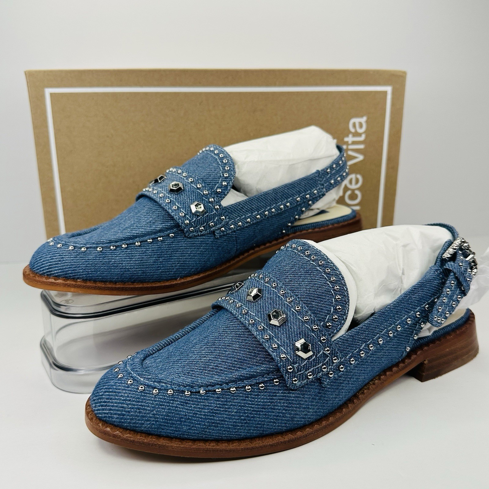 Dolce Vita Hardi Stud Flats Women's Size 6.5 Denim Blue Slingback Casual Shoes. New with box, unworn. See pictures for details.