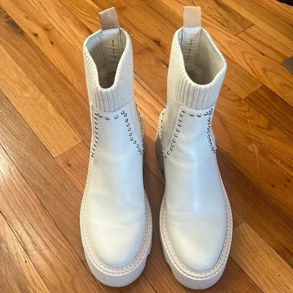 Dolce Vita Hoven Womens Leather Studded Chelsea Boots Good pre owned condition! Size 7.5 These Womens Dolce Vita Hoven Chelsea Boots are crafted with Leather/Textile/Manmade, and the closure is . Color-Ivory Manufacturer: Dolce Vita Size Origin: US Suggested Price: $180.00 Style Type: Chelsea Boots Collection: Dolce Vita Closure: Material: Leather/Textile/Manmade Fabric Type: Leather Boots need to be cleaned before wear. See photos. •No Returns No Holds No Trades